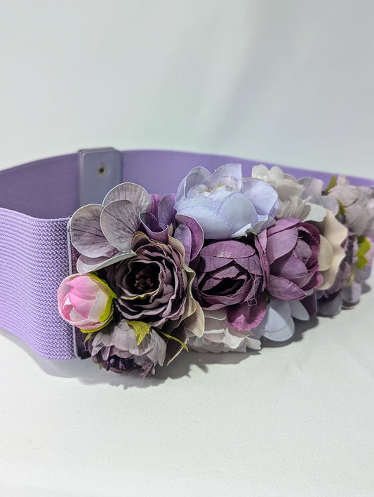 Cinturón Elástico Lila con Flores