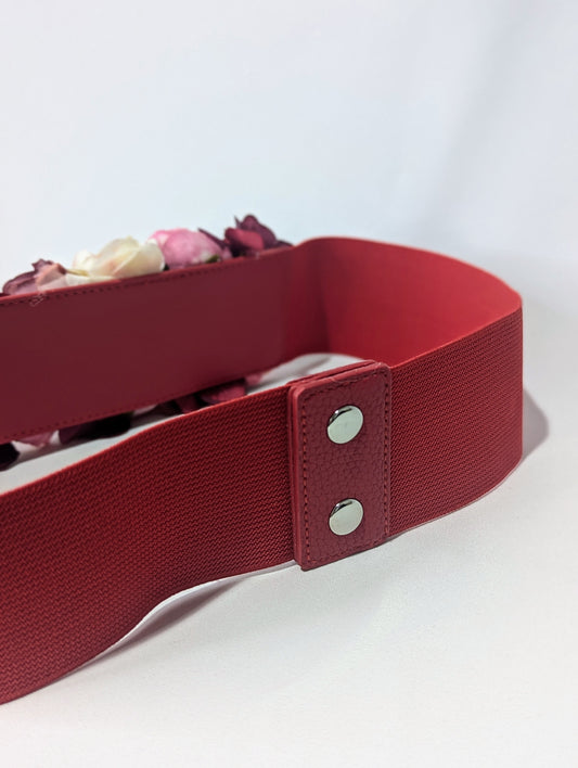 Cinturón Elástico de Flores Rojo